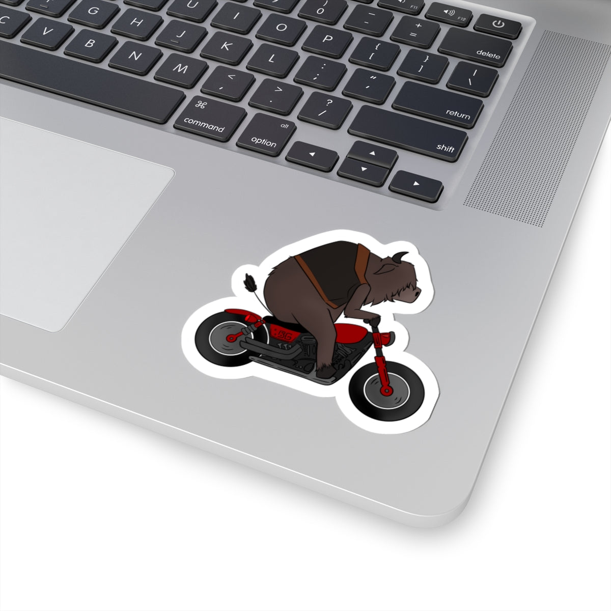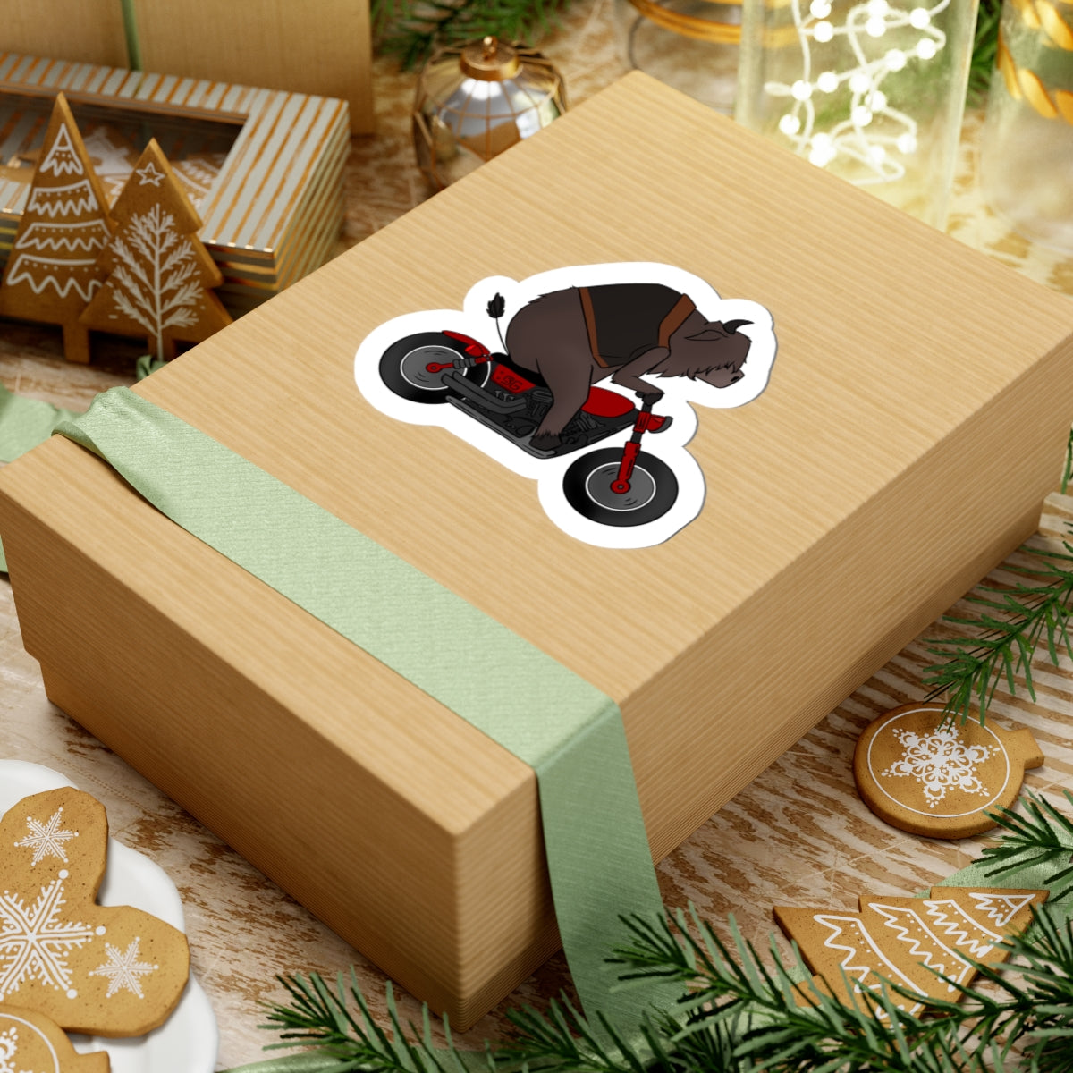 An all original design, hand drawn by my youngest buffal-ette, featuring a burly bison riding a compact red motorcycle. The illustration balances bold, flat colors and clean linework, giving the design a fun, slightly retro vibe. Stick it on a laptop, journal, phone case, or helmet to add a touch of road-ready humor and personality. This sticker suits anyone who loves motorcycles, quirky animal art, or low-key ways to customize their gear.